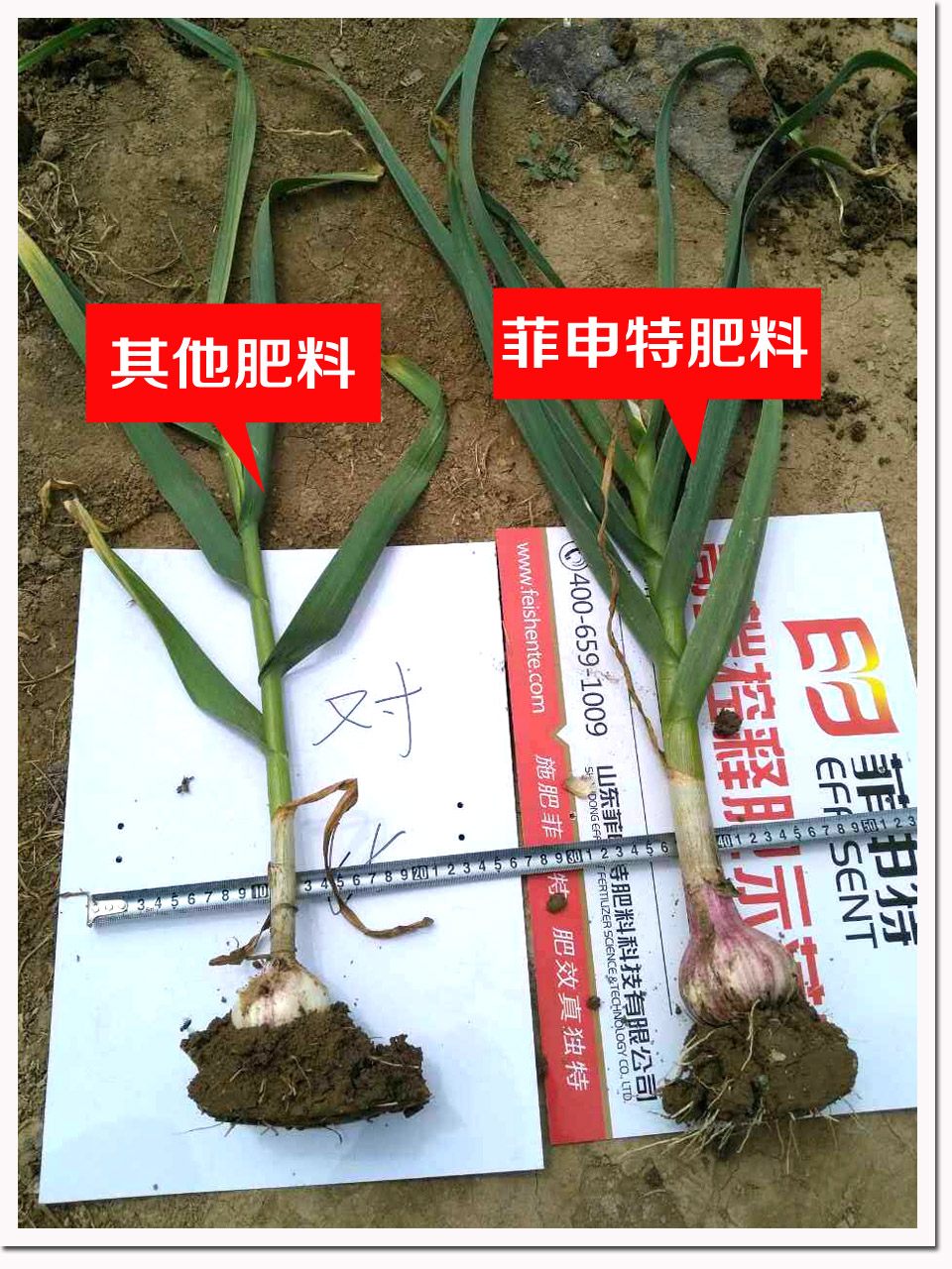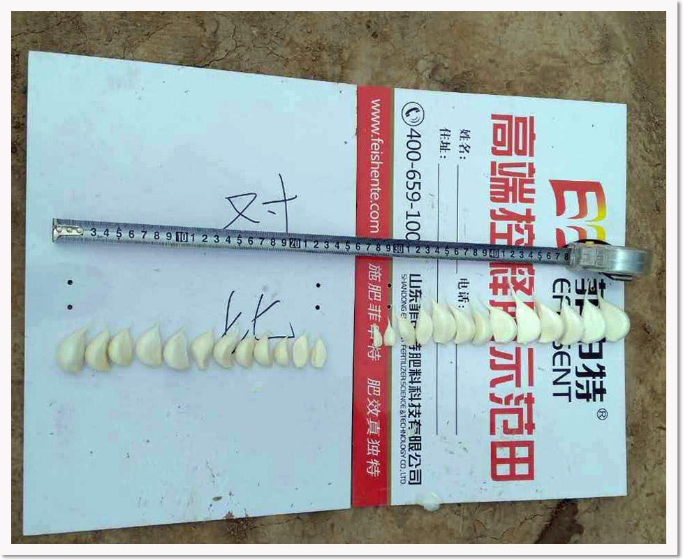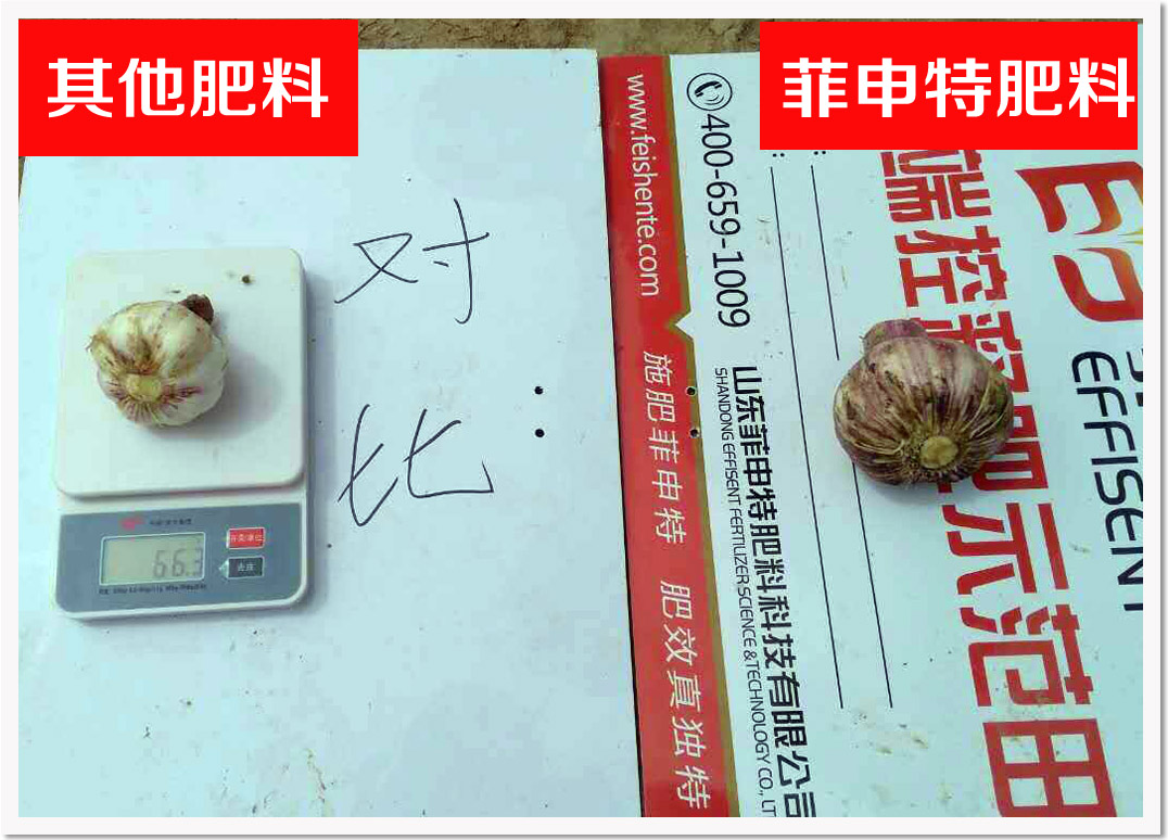 施用(yòng)菲申特肥料的(de)大(dà)蒜蒜頭個(gè)大♠§↔γ(dà),瓣多(duō),飽滿,而其他(t÷£ā)肥料的(de)則蒜頭個(gè)小(xiǎo),瓣少(shǎo✘≠β),相(xiàng)對(duì)幹癟,肥效"♦差别極大(dà)。
