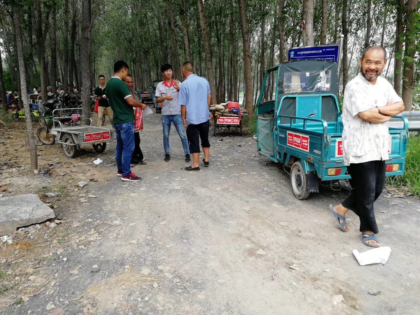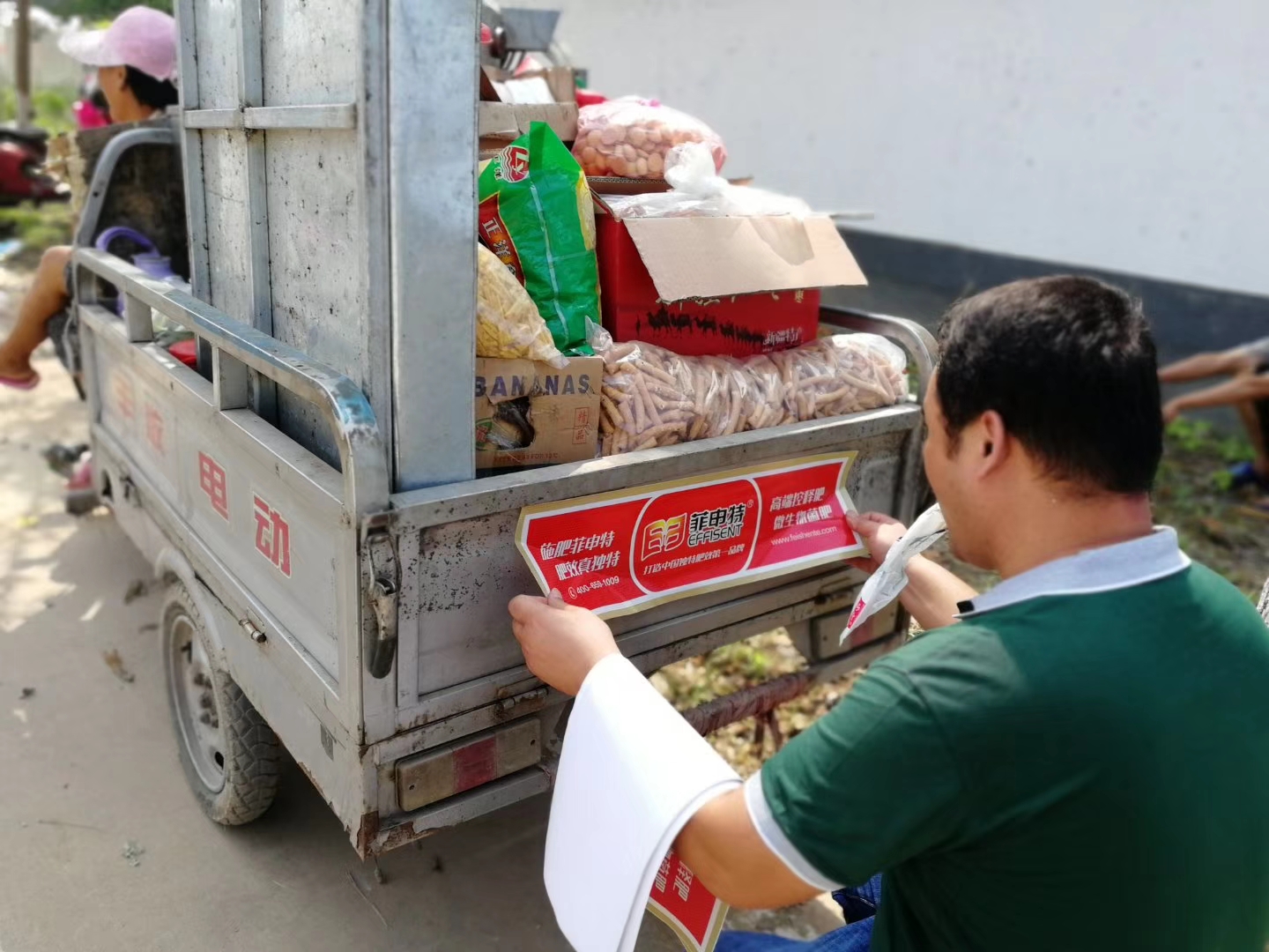 菲申特服務人(rén)員(yuán)為(wèi)農(nóng★₹₹)民(mín)張貼菲申特反光(guāng)貼