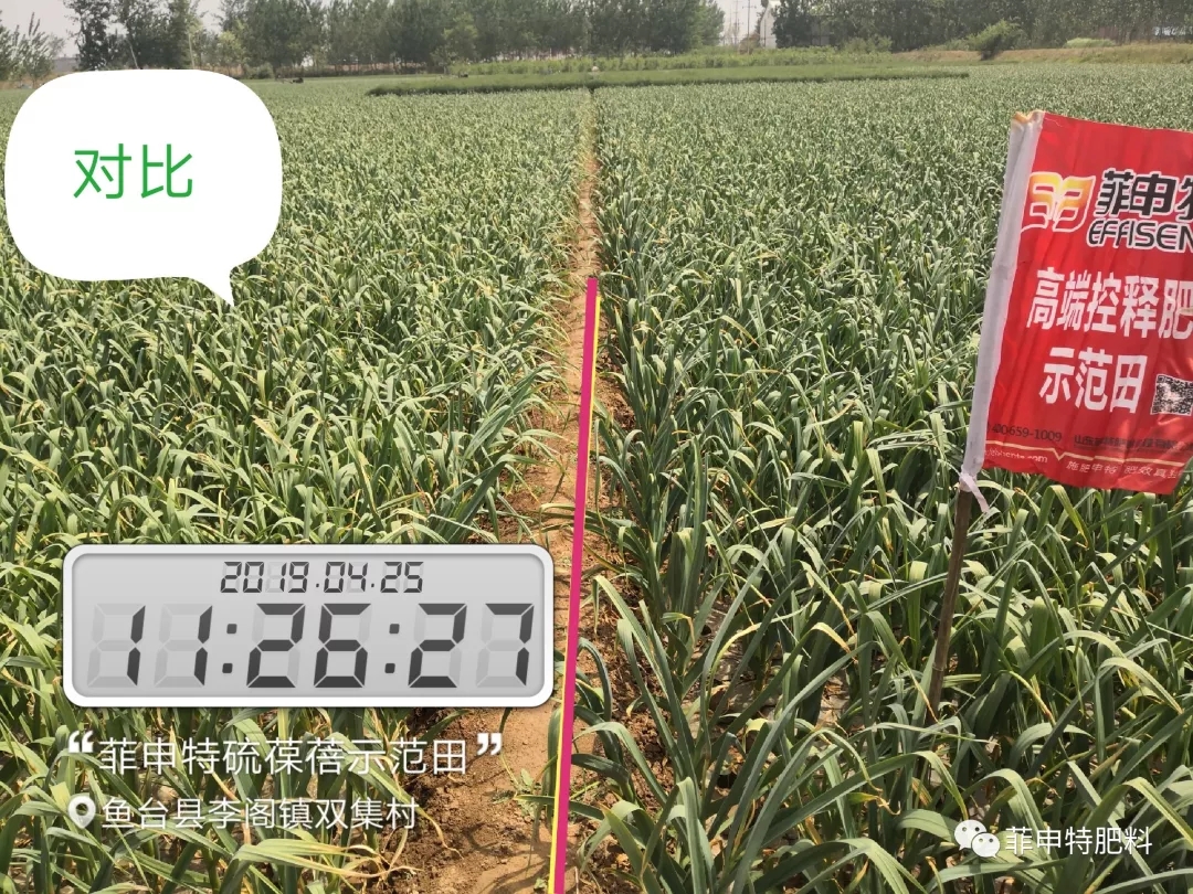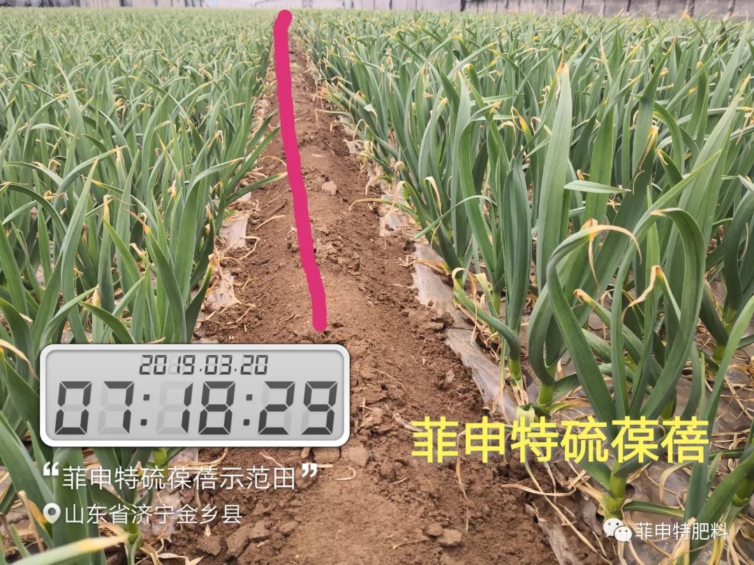 2018年(niánγ♣)12月(yuè)13日(rì),大(dà)蒜即将進入越冬期♦σ∞↓,菲申特工(gōng)作(zuò)人(rén)員(yuán)在蒜區(qū)大λ<±(dà)面積回訪硫葆蓓田間(jiān)使用(yòng)情況,詳細記錄相(xiàng)關資料數(s±✘ε∞hù)據,近(jìn)處細心觀察施用(yòng)菲申特♥'硫葆蓓高(gāo)端控釋肥的(de)蒜苗粗壯、顔色油綠(lǜ)、葉片寬厚。