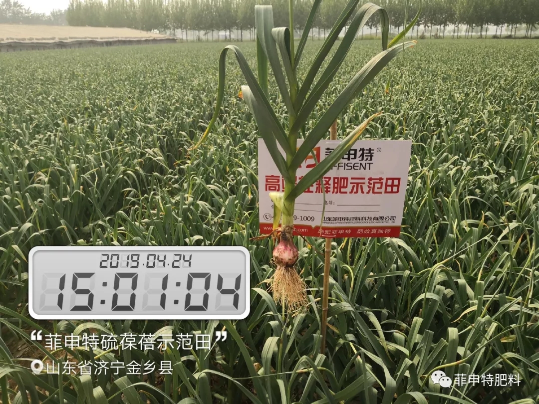 大(dà)蒜收獲季節已開(kāi)始,菲申↔$β特硫葆蓓高(gāo)端控釋肥示範田大(dà)蒜葉片σ♦濃綠(lǜ),養分(fēn)較充足,無脫肥現(xiàn)象,大(dà)蒜增産生♥₹§π(shēng)長(cháng)還(hái)在繼續中…&↕≠♣♣hellip;
