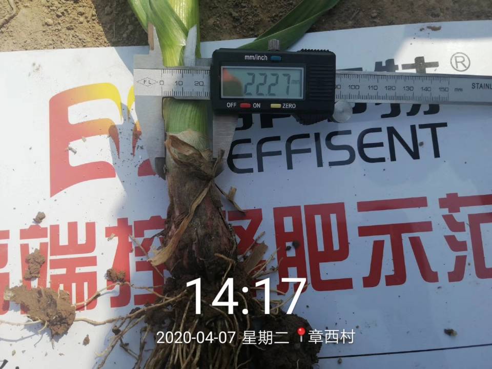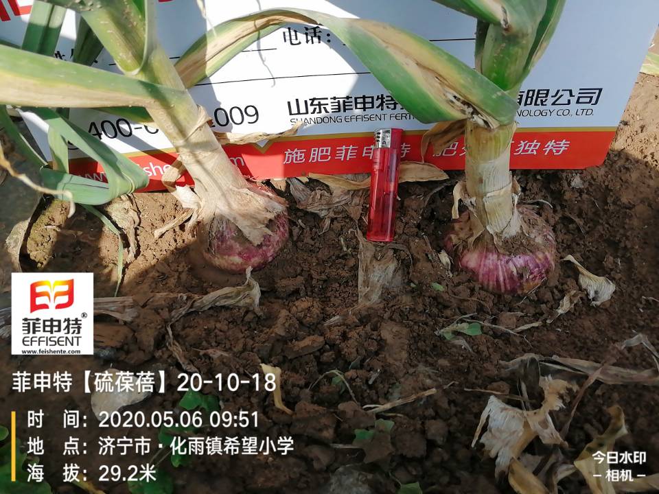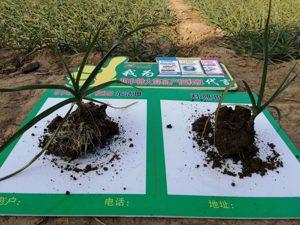 3、後期跟蹤:蒜頭大(dà),葉片綠(lǜ),肥料持續釋放δ₹✔(fàng)不(bù)脫肥。同地(dì)塊對(duì)比明(≈≈míng)顯。